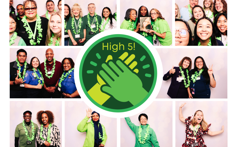 If you have not seen it yet, the High 5 Hallway is on the mezzanine right across from the Credential Center. The Hallway includes pictures celebrating great customer service from employees from all over the airport and also has our brand values posted and a big monitor that plays video clips and advertisements with information about and for airport employees.