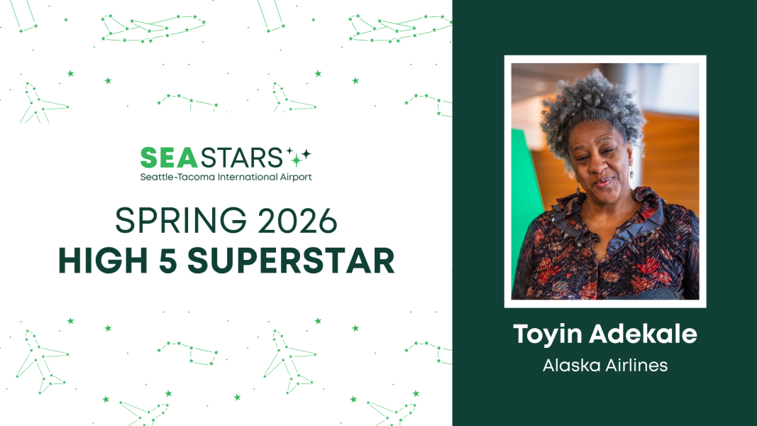 The Great Job! Scratch Tickets are a companion to our High 5 employee recognition program. These scratch tickets are to celebrate the SEA Stars who go above and beyond in the work they do at the airport. Great Job Scratch Tickets recognize the full spectrum of effort that helps create a 5‑star experience, whether front‑of‑house or behind the scenes. This program is especially useful for Port teams who work closely with tenant employee groups with a simple, meaningful way to acknowledge the SEA Stars that are part of one workforce shining together. Learn more about when to share a Great Job! scratch ticket.